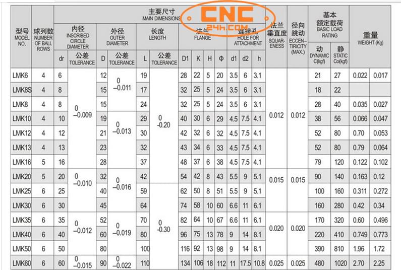Con trượt LMK12UU , LMK16UU , LMK20UU , LMK25UU , LMK30UU, LMK16LUU, LMK20LUU, LMK25LUU, LMKL30UU