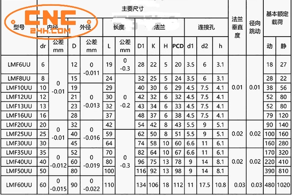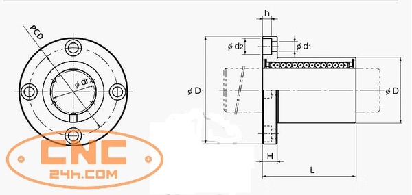 Con trượt tròn LMF12UU, LMF16UU, LMF20UU, LMF25UU, LMF30UU