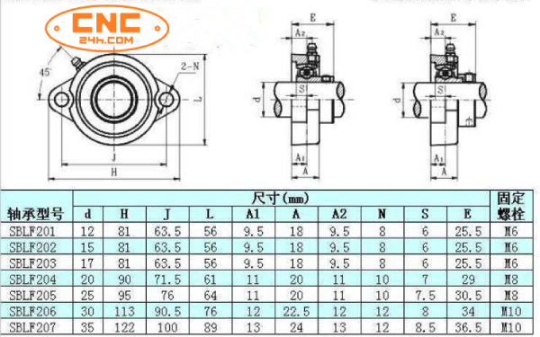 Gối đỡ SBLF203, SBLF204, SBLF205, SBLF206, SBLF207 là gối đỡ chịu lực tốt độ chính xác cao, chịu tải cao, chống mài mòn tốt. Vòng đệm bên trong 2 lớp chống bụi tốt .