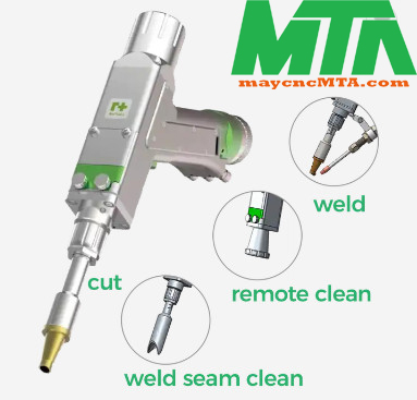 - Máy hàn laser của MTA sản xuất dùng súng hàn laser thế hệ mới BW101-GS có 4 chức năng trong cùng một súng hàn: hàn cầm tay, cắt, làm sạch mối hàn và làm sạch từ xa. Ta có thể thay đổi chức năng dễ dàng bằng cách thay đổi đầu súng hàn