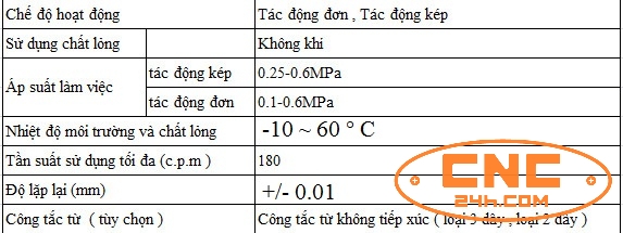 Đặc điểm kỹ thuật chung của xilanh kẹp MHC2 (10D-25D ).
